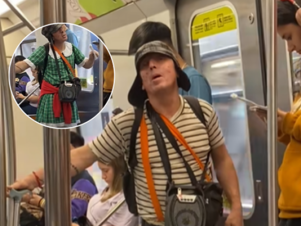 No aprende: Vuelve el "Chavo del 8", ahora disfrazdo de la "Chilindrina" en el metro